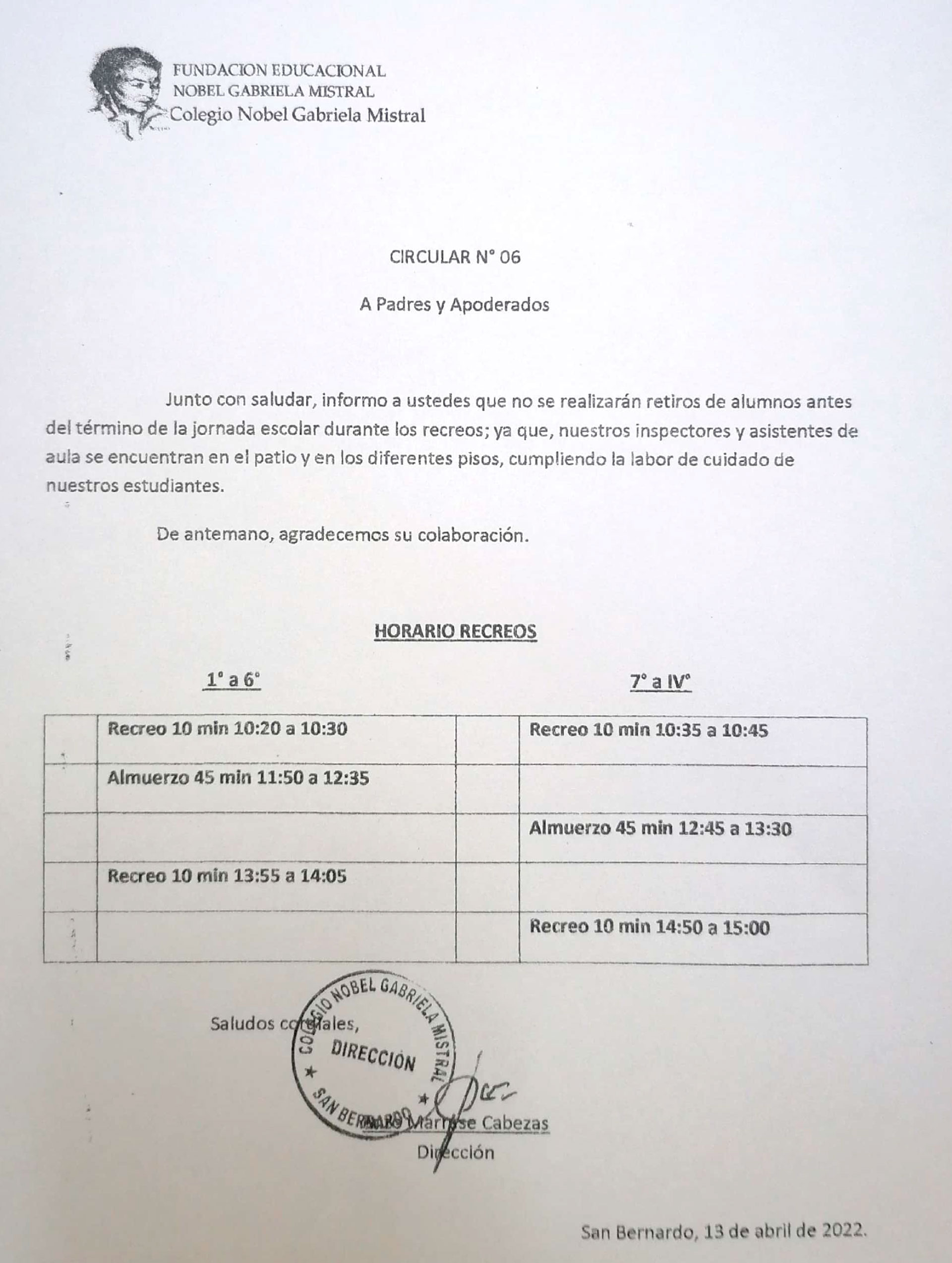 Circular informativa Nº 4